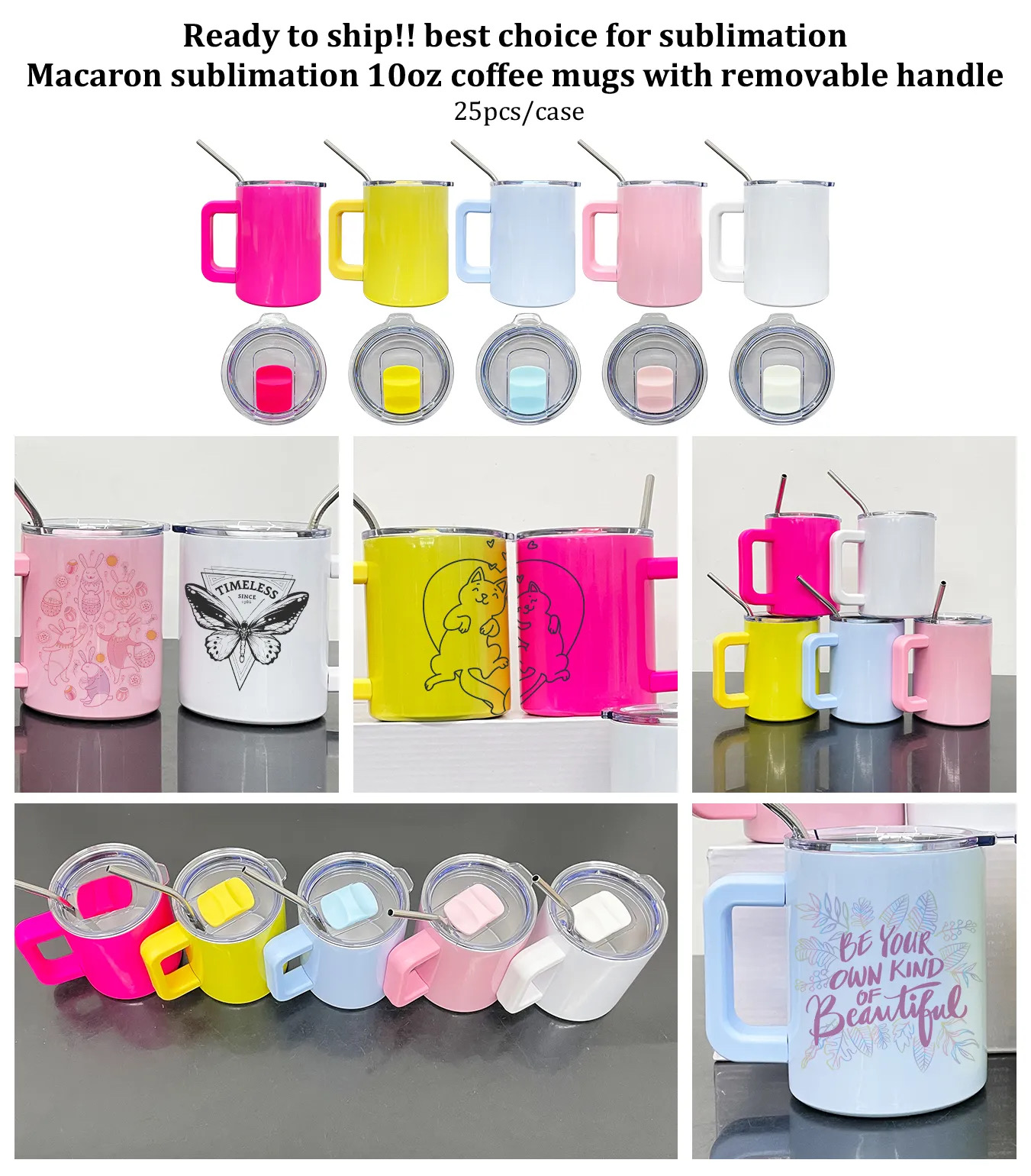 Alwin China RTS Macaron Sublimation 10oz Coffee Mugs with Removable Handle Mixed Color